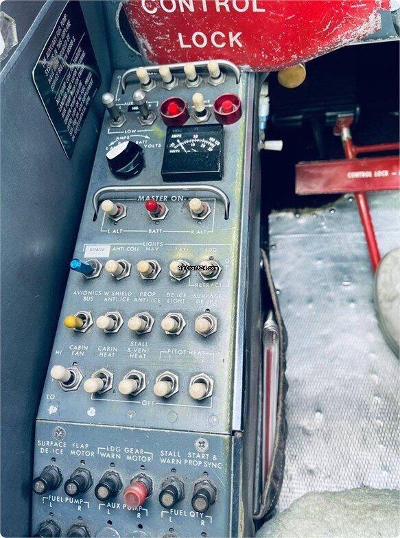 | Avionica | | Garmin GNS430W NAV-COM GPS Garmin GNC225 COM King KY196 COM King KMA24 Audio Panel, Marker Beacon ARC650A ADF King KI229 ADF Indicator King KN62 DME Garmin GTX330 Transponder S ARC400A Autopilot, 2 axis with yaw damper, altitude hold PS Engineering PM1000 Intercom RTA1003 Radar Kannad ELT406 AF |