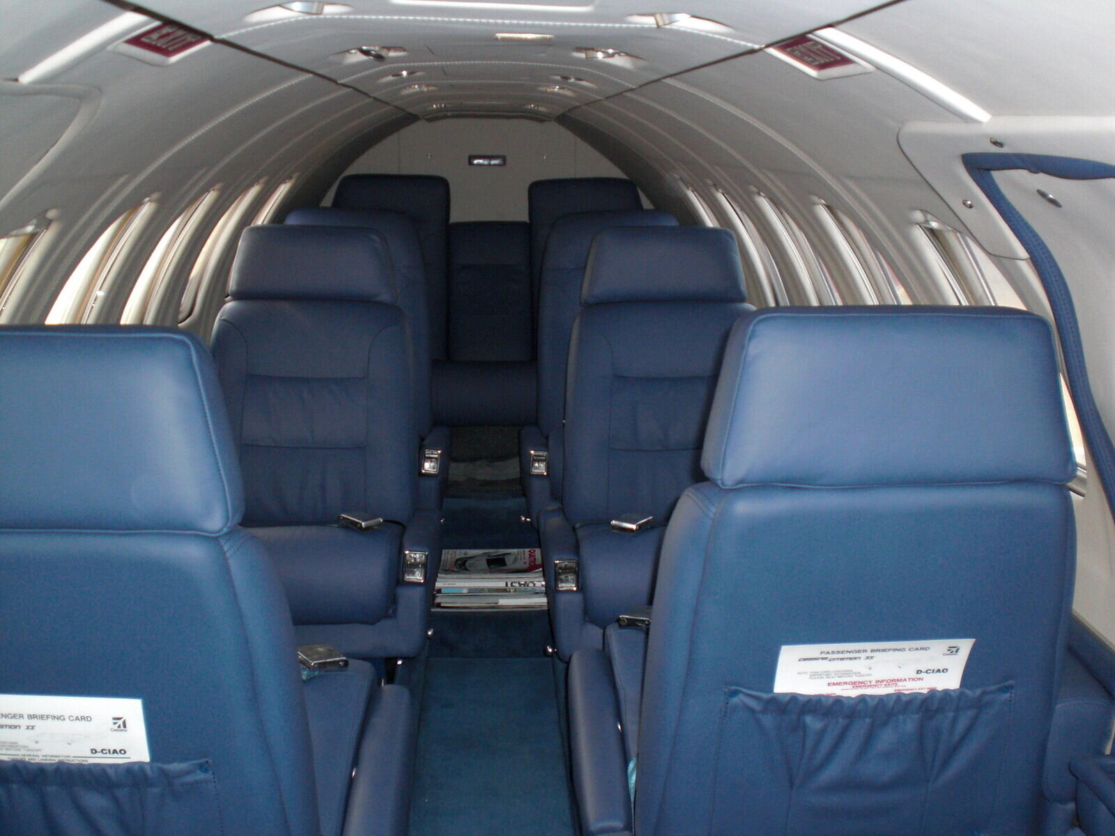 | Interiore | The aircraft has a luxury interior with Blue leather seats. Blue wool carpeting and white leather headliners.